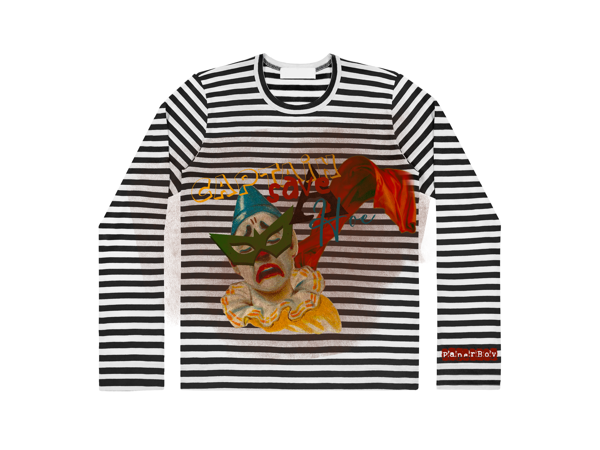 Elevate your fashion brand with this premium premade long sleeve shirt design featuring a distinctive clown in a cape, titled "Captain Save A Hoe." This digital product is perfect for resale, complete with a comprehensive tech pack, design mock-up, and vector files for easy customization.